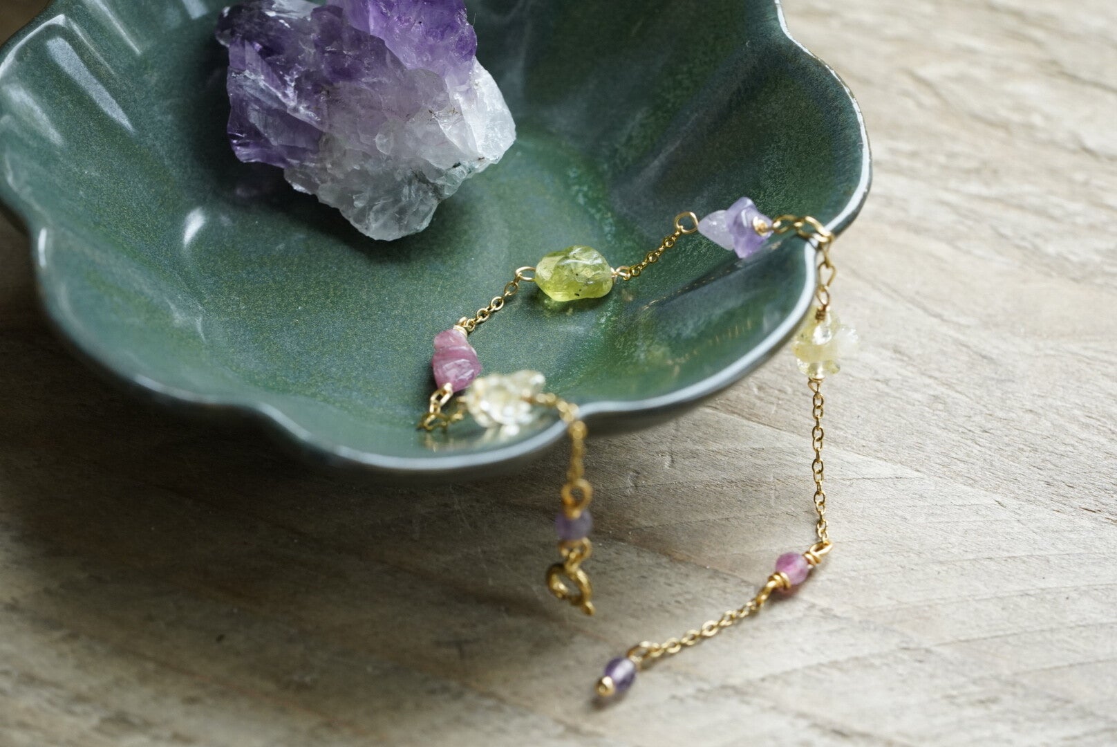 Dit armbandje is toch te lief? Vandaar de lieve naam. Hij is gemaakt van peridot, amethyst, tourmalijn en citrien. Allemaal hebben ze hun mooie eigenschappen. Het kost best wat arbeid om dit armbandje te maken. Hij is geheel van stainless steel waardoor hij gegarandeerd mooi blijft.