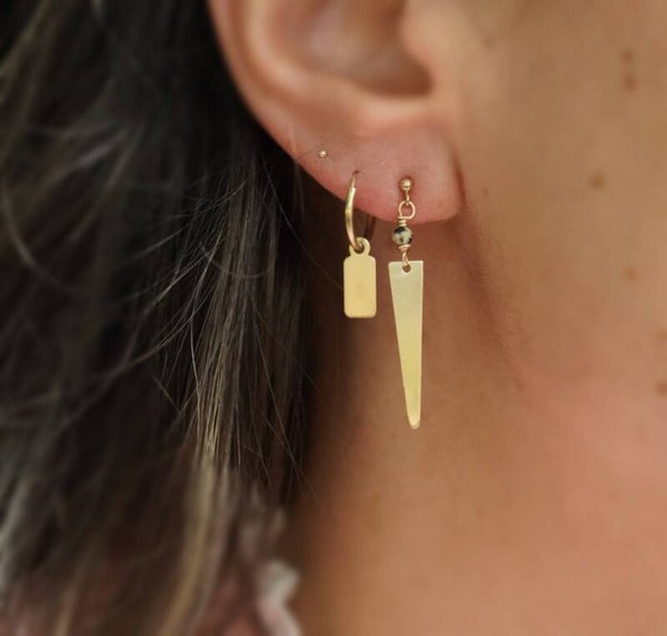 Stijlvolle minimalistische oorbellen met de edelsteen spotted stone. Stoer maar klassiek tegelijk. Volledig 14k gold filled.