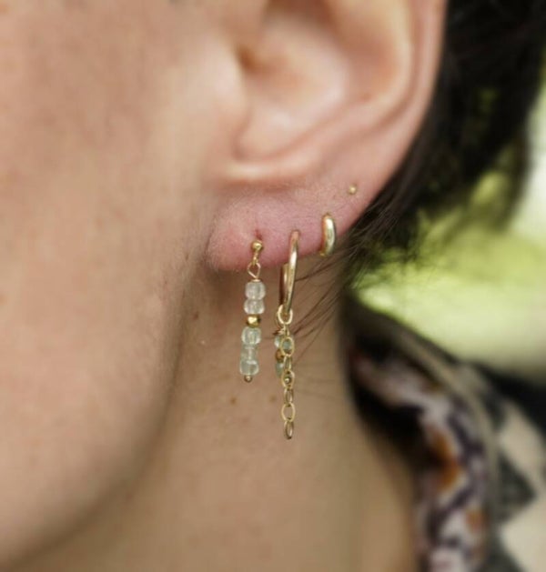 Een hele toffe 14k gold filled single oorbel met een aventurijn 2x2mm steentjes. Aventurijn heeft een zacht groene kleur. Je kunt hem leuk combineren met andere oorbellen. Bv met Creool aventurijn. Een echte eyecather!