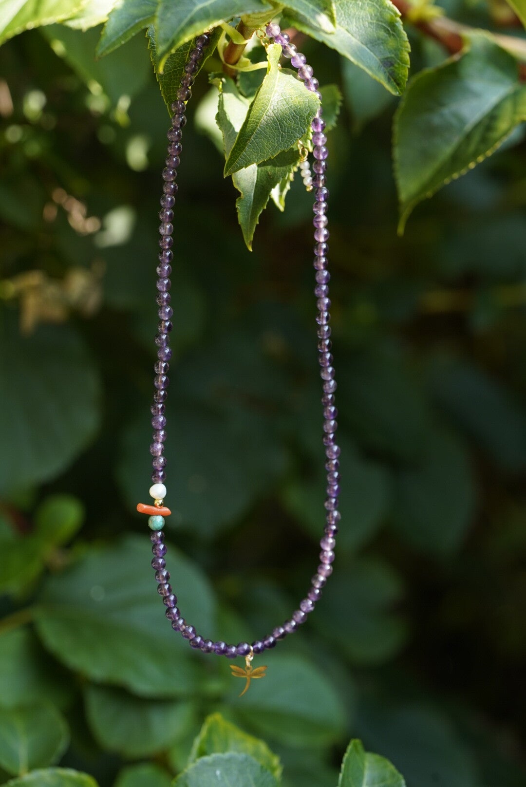 Ketting amethyst, zoetwaterparel, koraal en afrikaanse turkoois