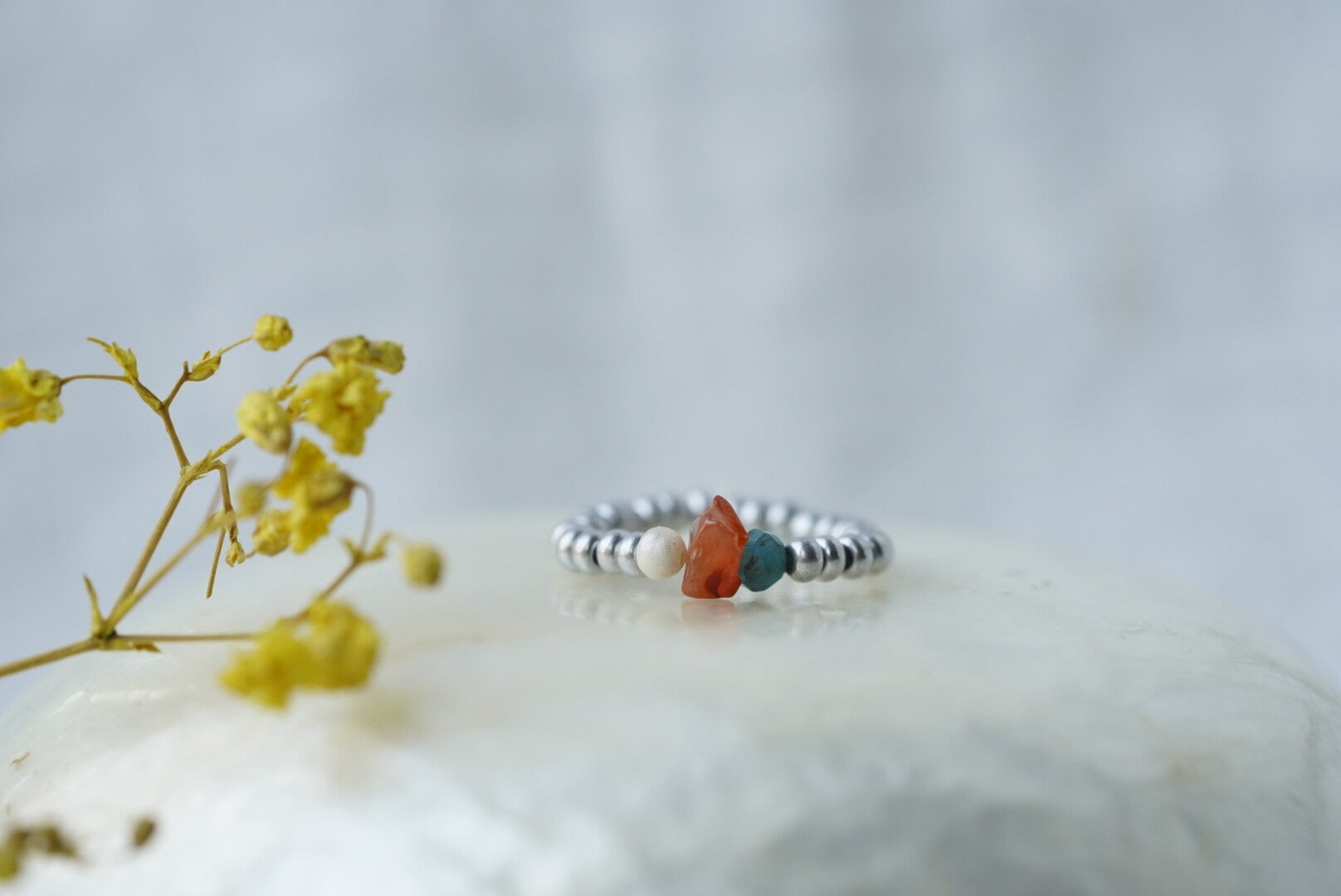 Carneool is vaak verbonden met energie en creativiteit, apatiet staat bekend om zijn kalmerende werking, en parel heeft een tijdloze, elegante uitstraling. Deze mix voegt echt een bijzondere balans toe aan de ring. Het elastiek maakt de ring comfortabel en flexibel om te dragen.