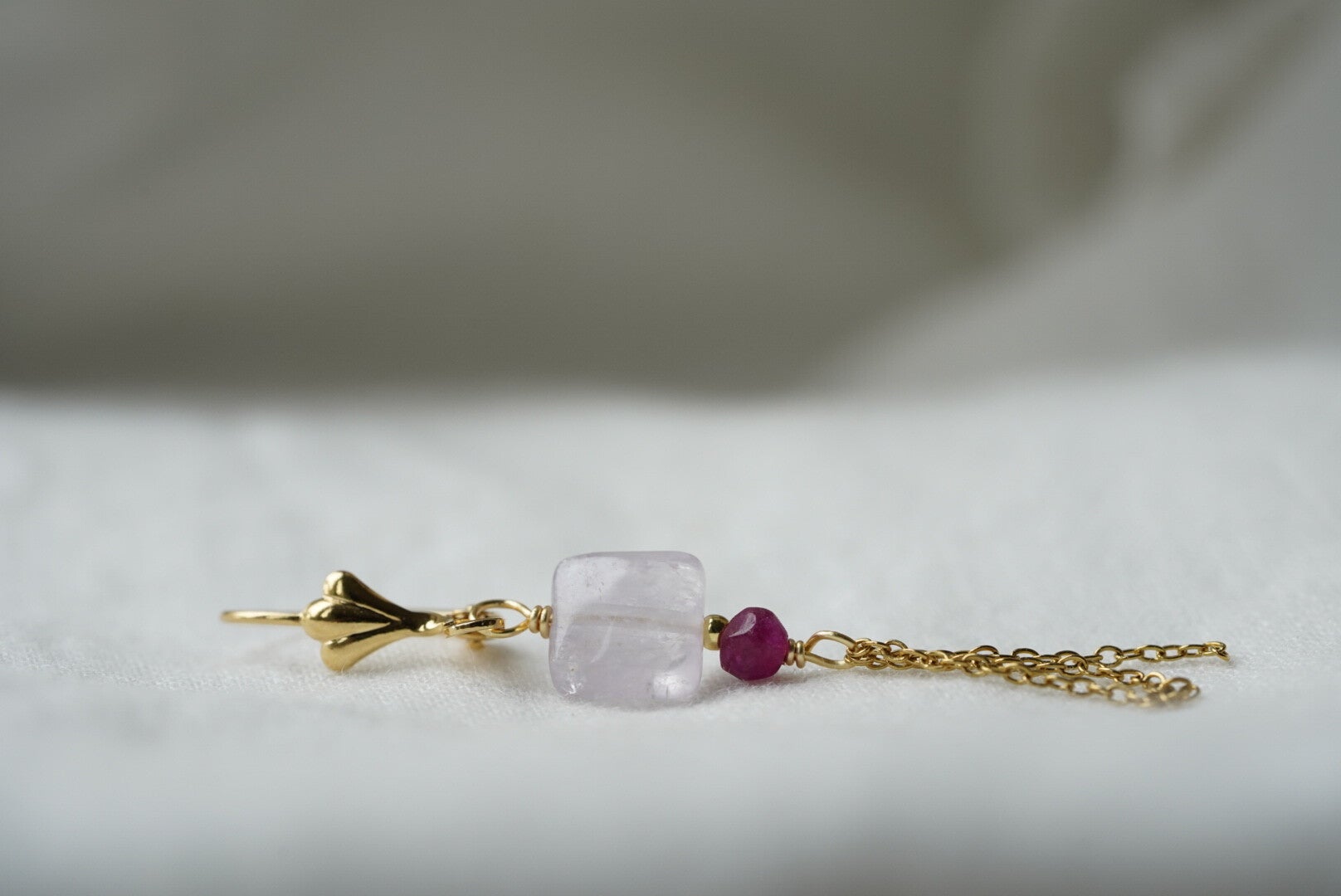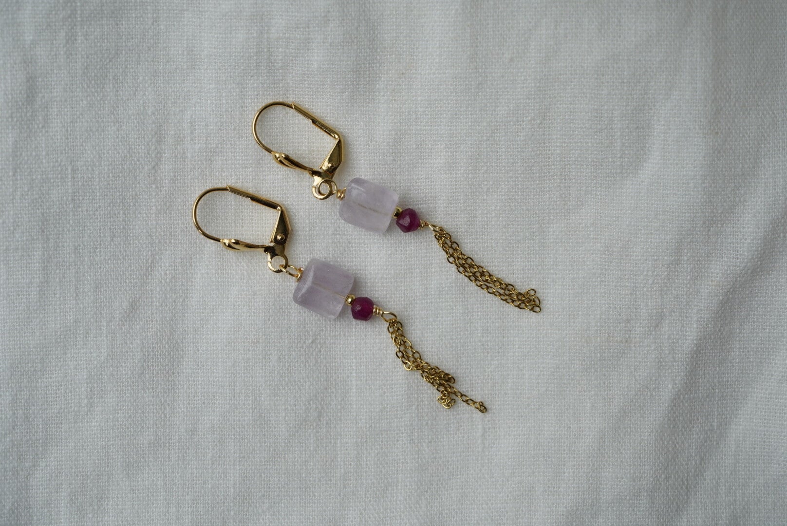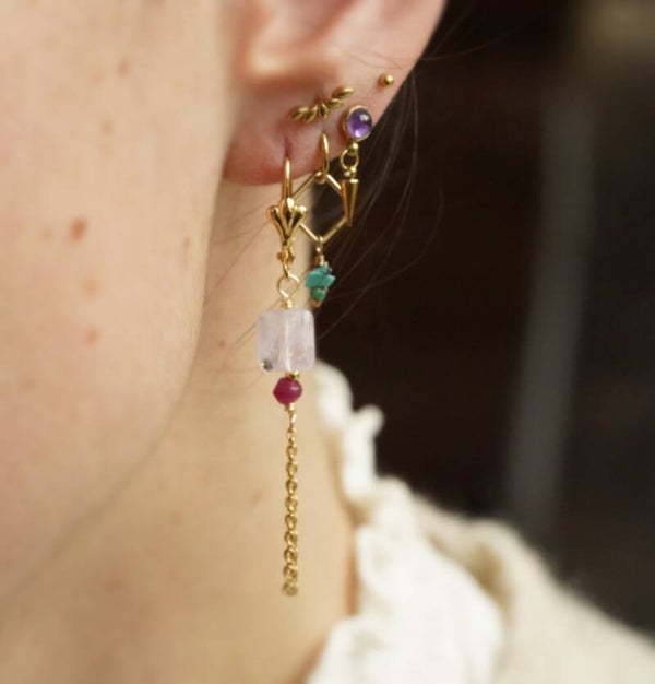 Deze prachtige gouden gold plated oorbellen combineren de kalmerende energie van ametrien met de vurige kracht van robijn. Ametrien brengt balans en helderheid, terwijl robijn passie en vitaliteit toevoegt aan je look.