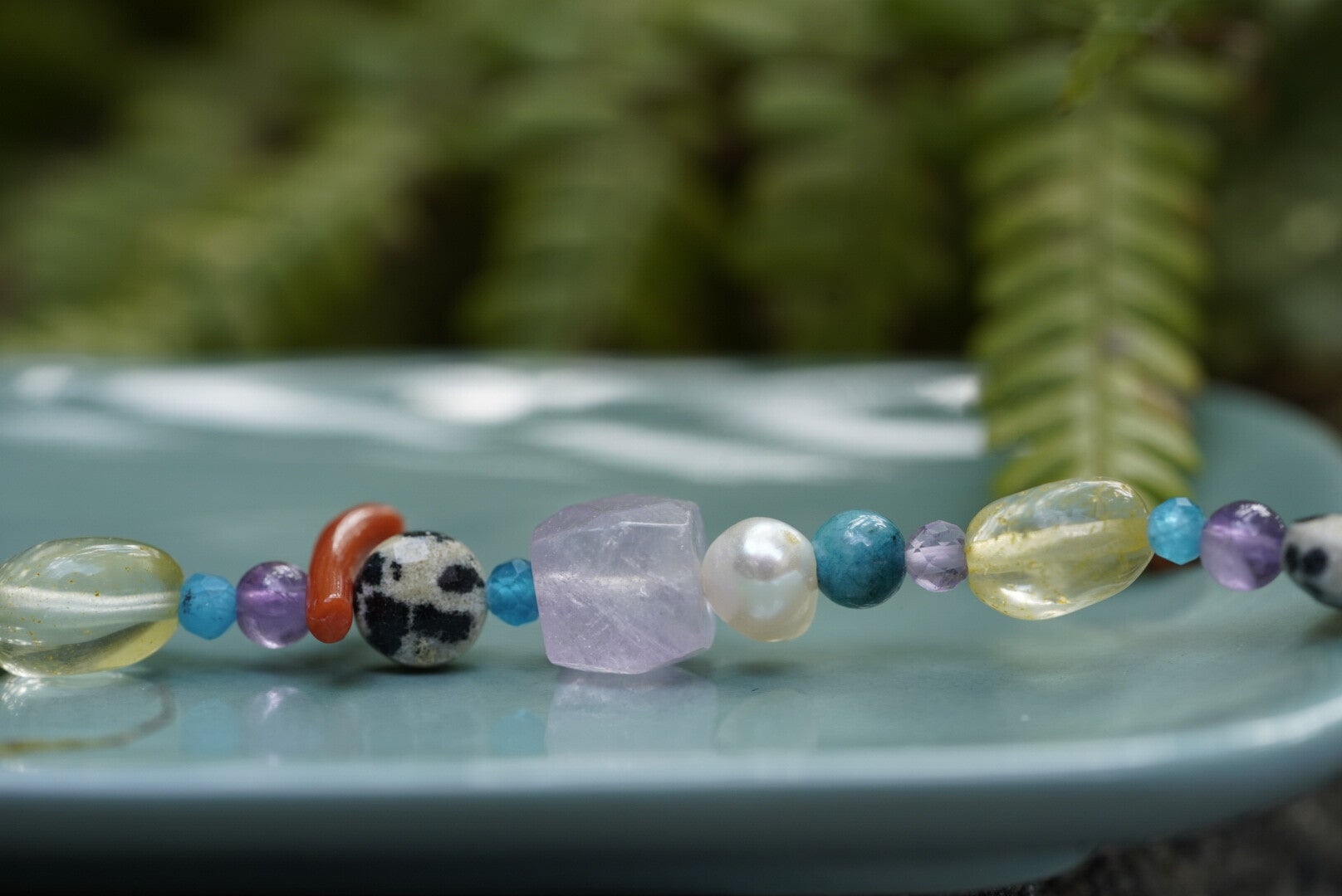 Een met zorg gemaakte armband van echt 925 sterling zilver, voorzien van zorgvuldig geselecteerde edelstenen en een zoetwaterparel. Elke steen is gekozen vanwege zijn kleur & betekenis.