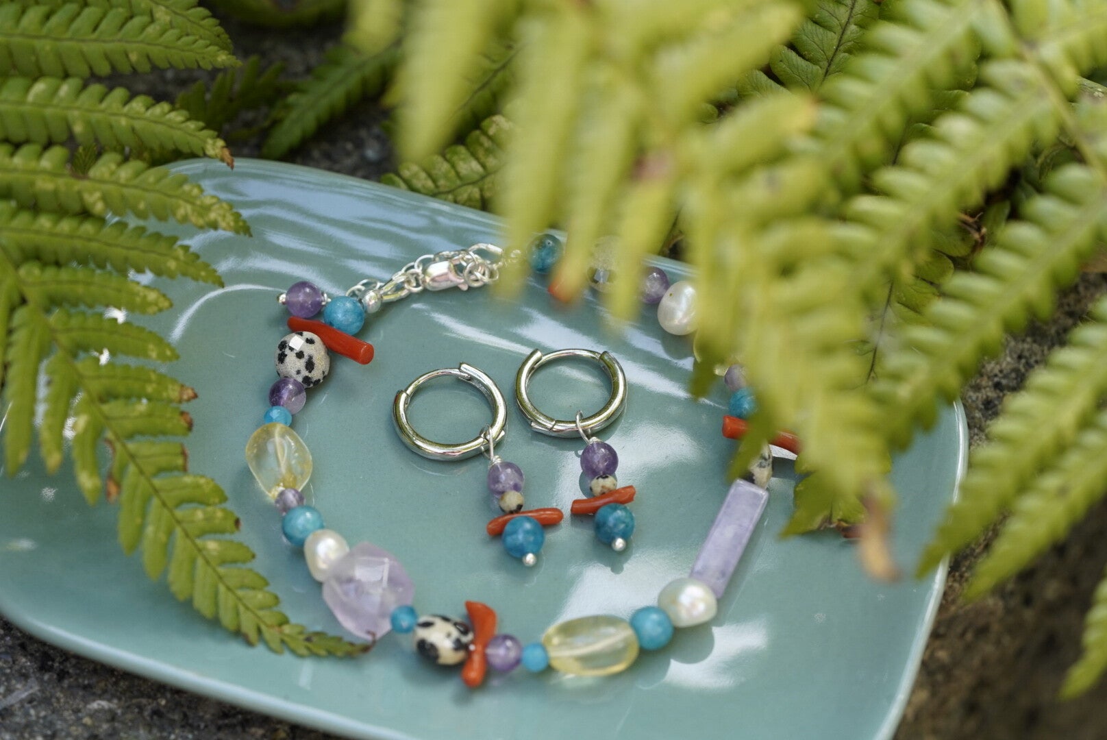 Unieke handgemaakte oorbellen van 925 sterling zilver. Elk paar is zorgvuldig samengesteld met een combinatie van vier bijzondere edelstenen: