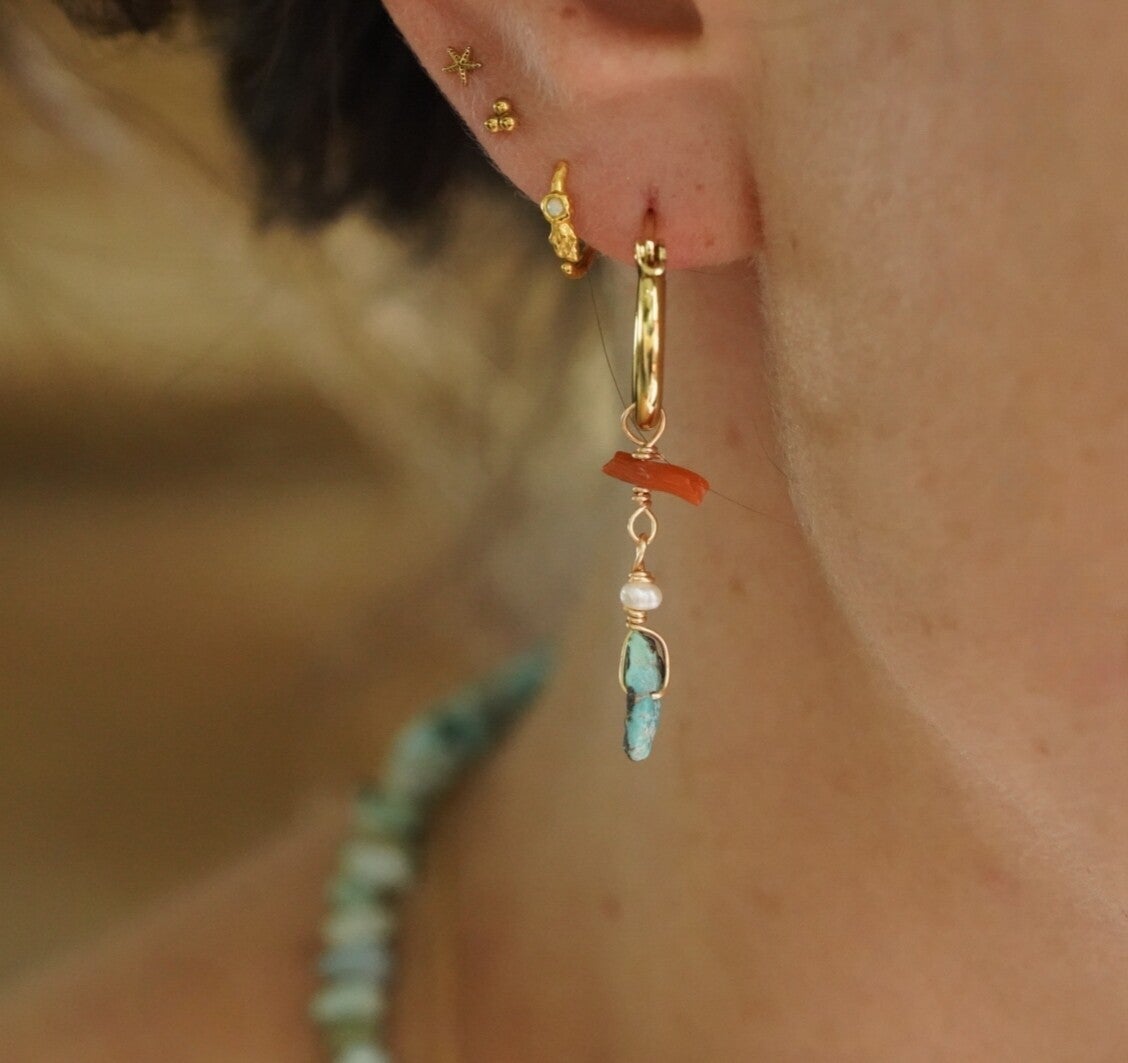 Materialen: koraal, echte turkoois & zoetwaterparel